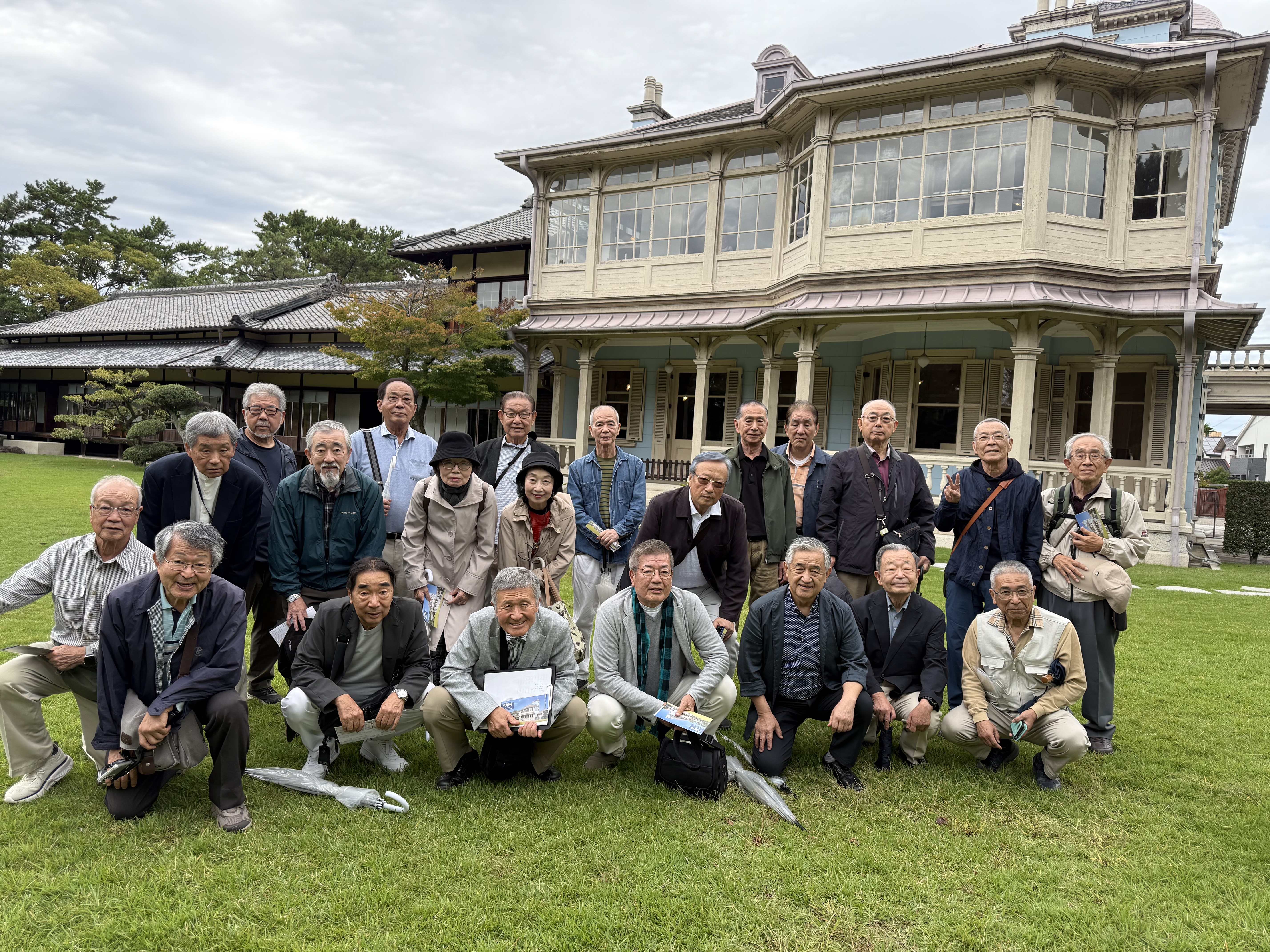 名古屋駅からチャーターバスで桑名市へ。最初に訪れたのは「六華苑」です。洋館と和館が繋がった珍しい建物が広大な庭園と共に国